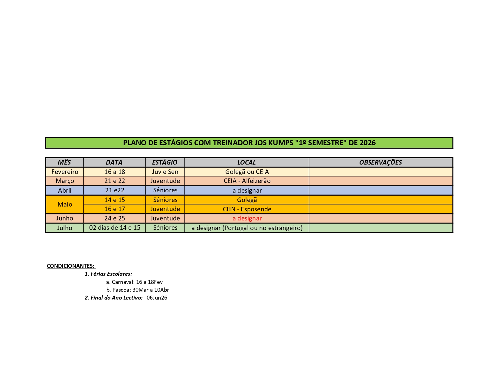 Vem a Federação Equestre Portuguesa informar as datas dos estágios para o Primeiro Semestre de 2026: